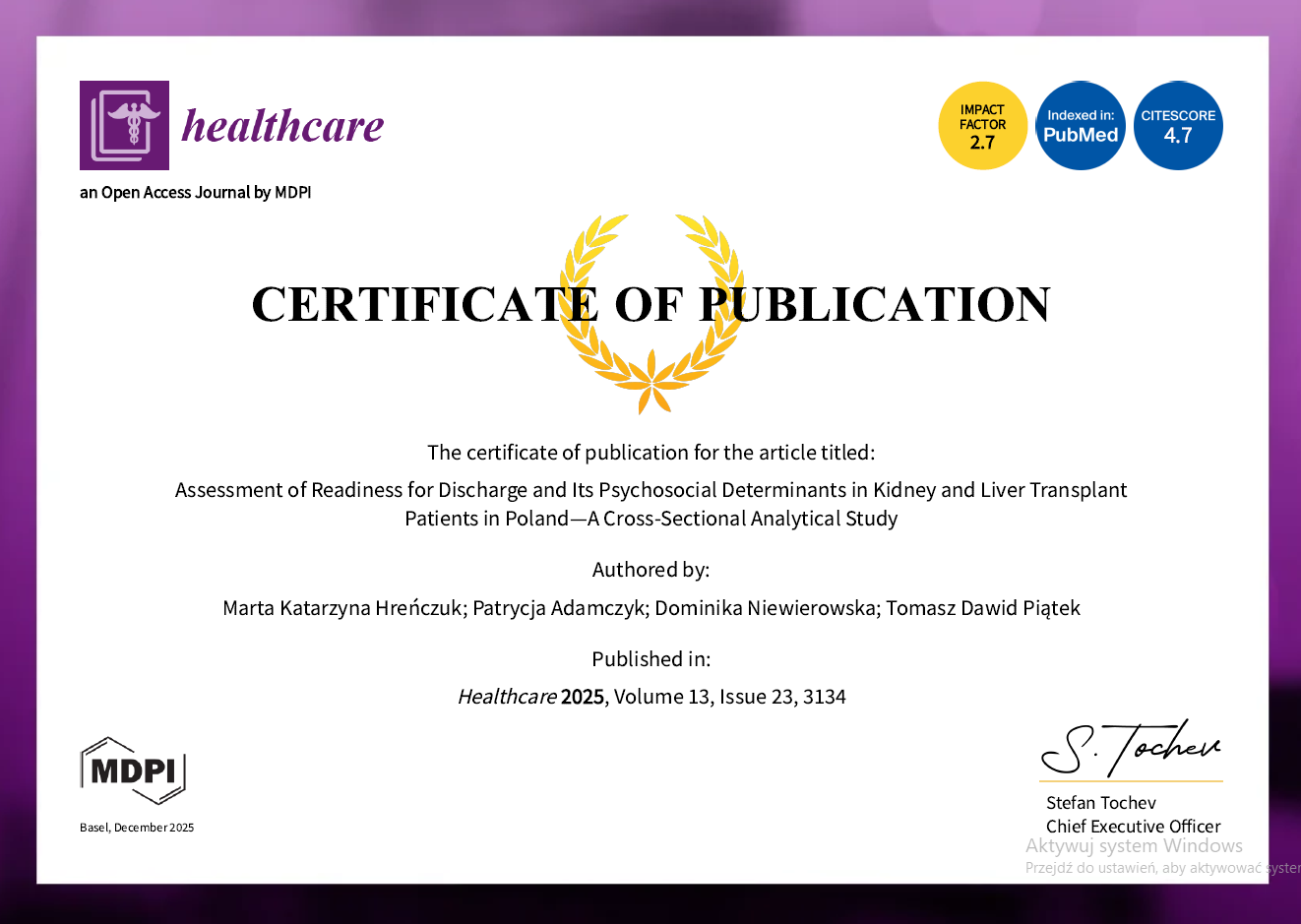 Informujemy o ukazaniu się nowej publikacji pracowników Zakładu i zachęcamy do przeczytania: https://www.mdpi.com/2227-9032/13/23/3134